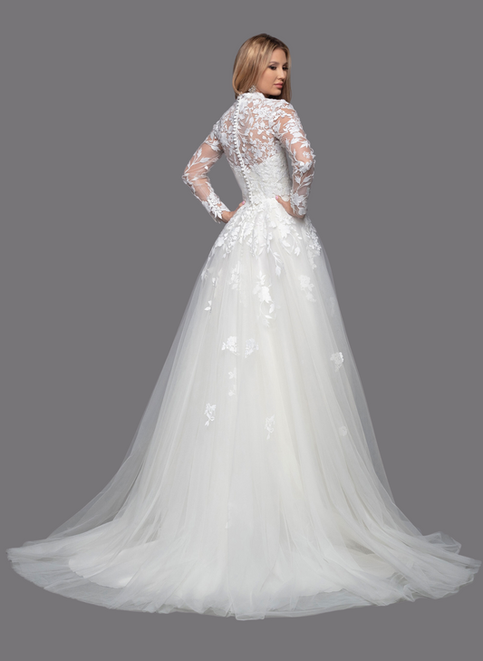 50842- Tulle/High Neck/Long Lace Sleeves